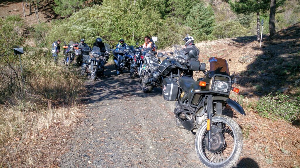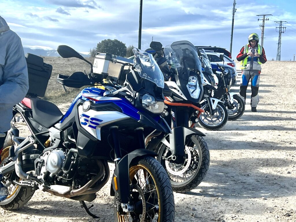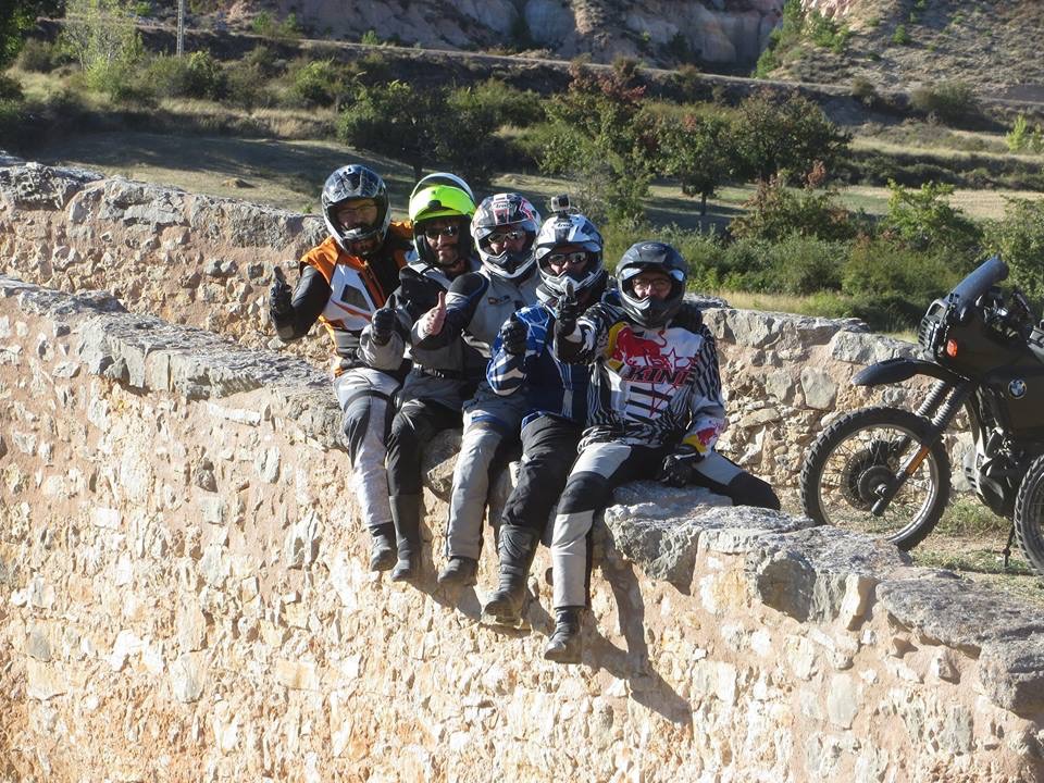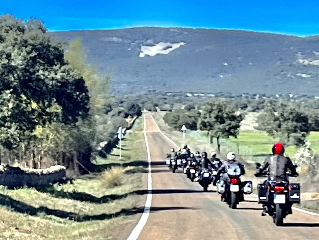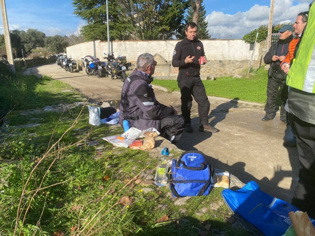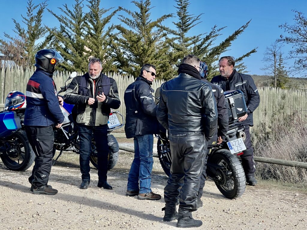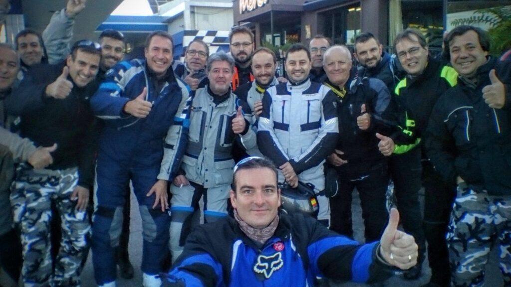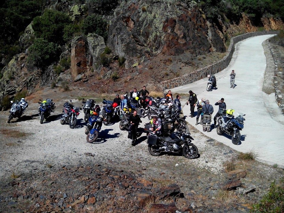 Una vez arrancados no tenemos por qué circular en conserva, aunque normalmente rodamos agrupados de manera afín; por velocidad, por motivación, por tiempo a dedicar a fotografías… Llevamos la ruta cargada en el navegador y de esta manera podemos gestionarnos. Aunque siempre definimos unos puntos obligatorios de reagrupamiento. El grupo va normalmente cerrado por el Presidente u otro piloto que tenga ganas de ir detrás, y que lleve el gps cargado; de manera que si alguno encuentra algún contratiempo, le bastará con quedarse quieto esperando el refuerzo.