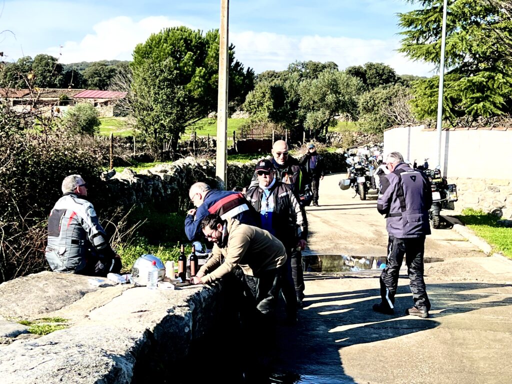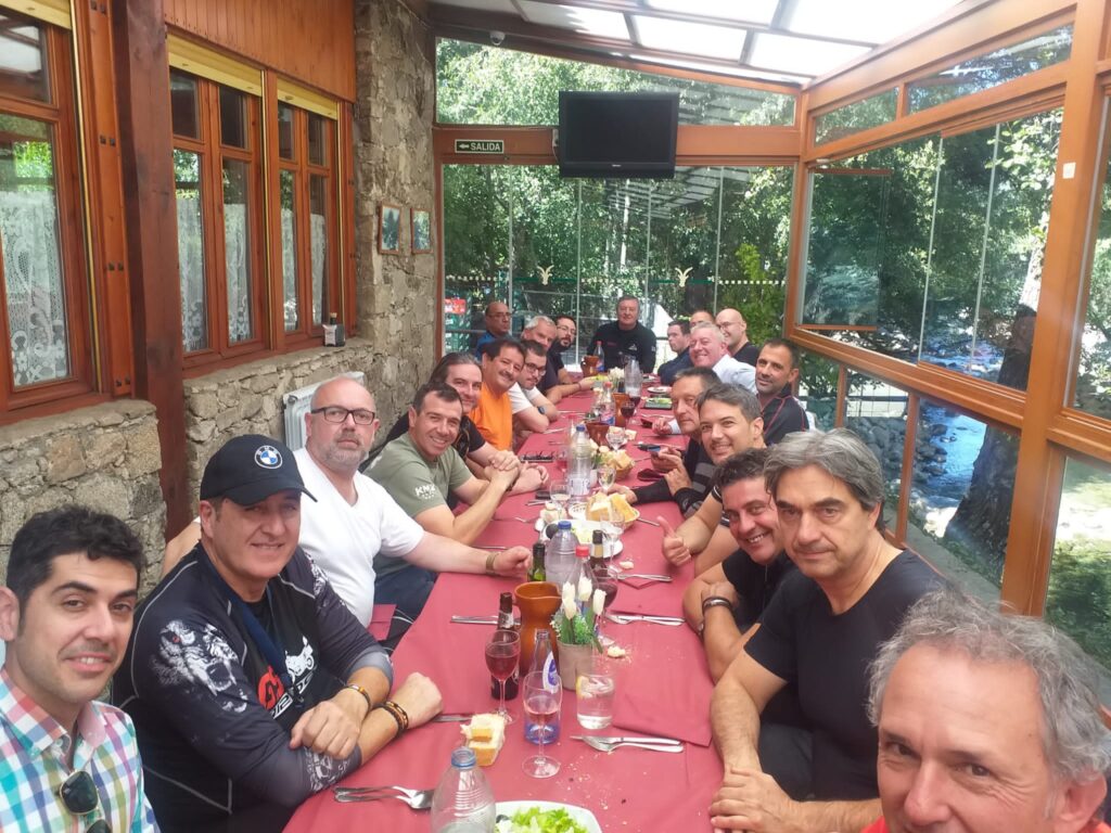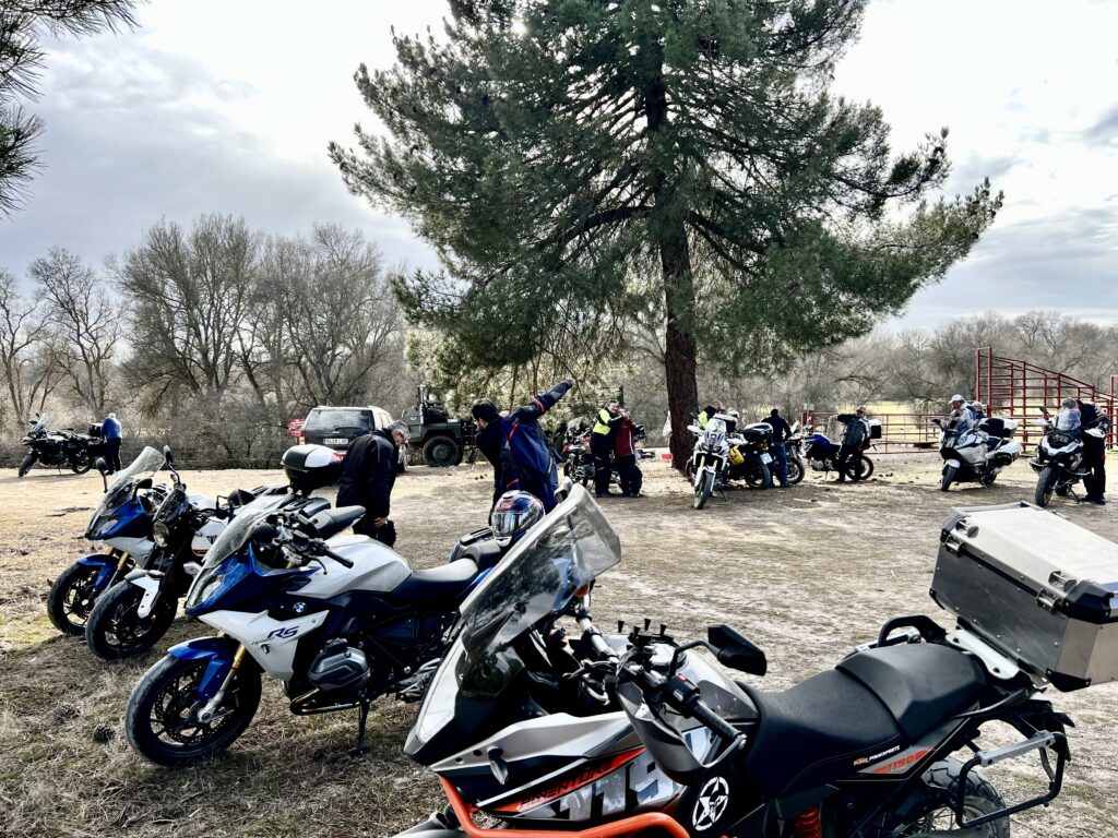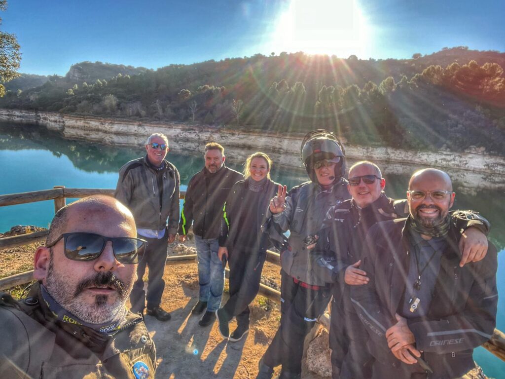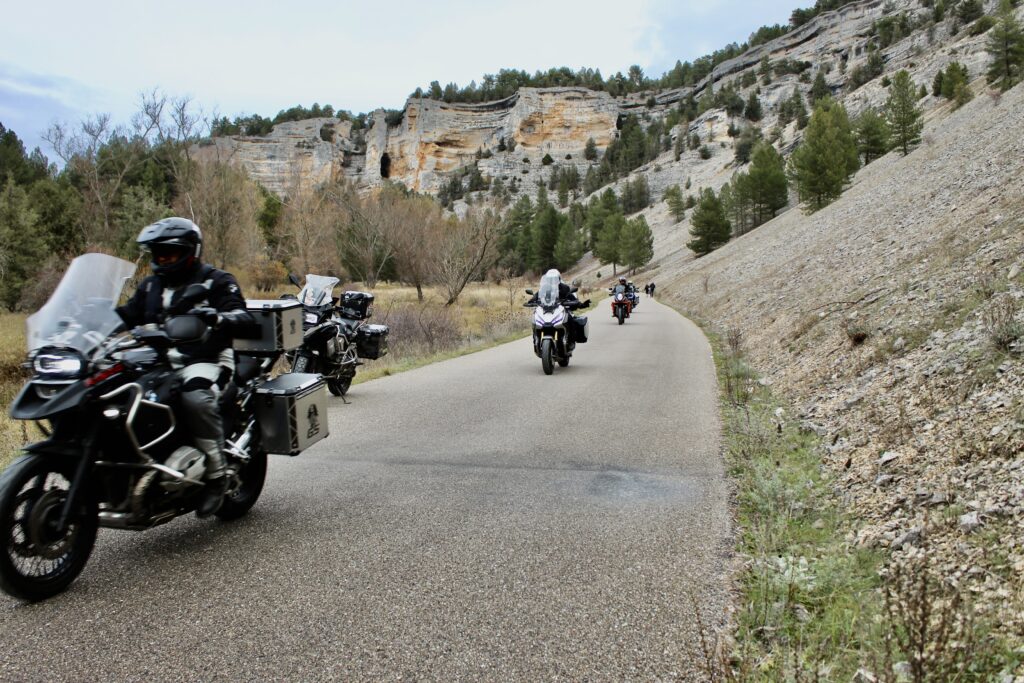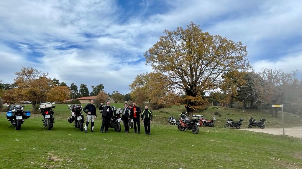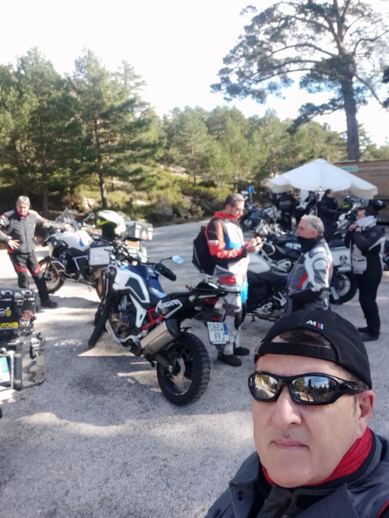 Una vez arrancados no tenemos por qué circular en conserva, aunque normalmente rodamos agrupados de manera afín; por velocidad, por motivación, por tiempo a dedicar a fotografías… Llevamos la ruta cargada en el navegador y de esta manera podemos gestionarnos. Aunque siempre definimos unos puntos obligatorios de reagrupamiento. El grupo va normalmente cerrado por el Presidente u otro piloto que tenga ganas de ir detrás, y que lleve el gps cargado; de manera que si alguno encuentra algún contratiempo, le bastará con quedarse quieto esperando el refuerzo.