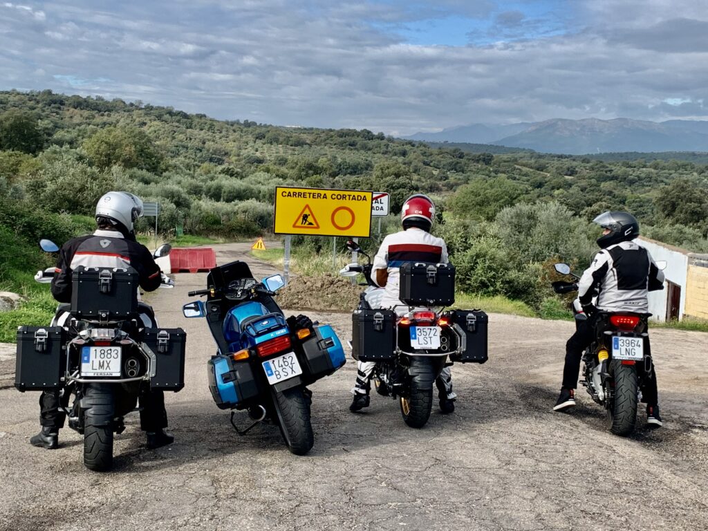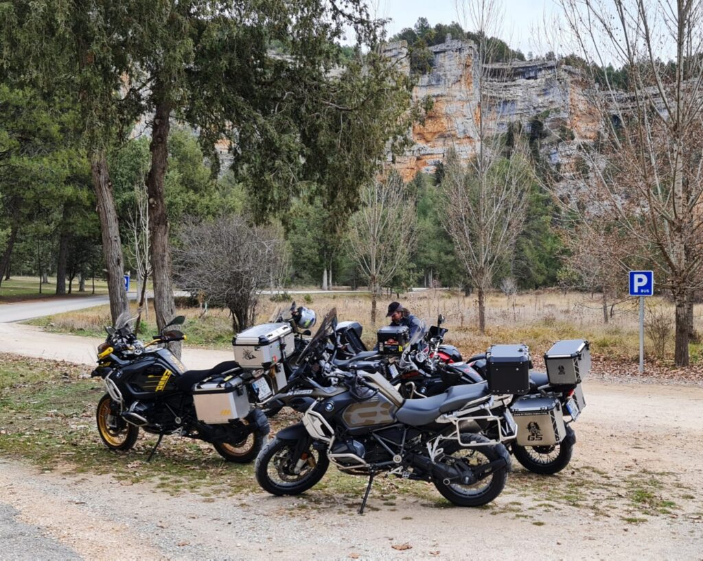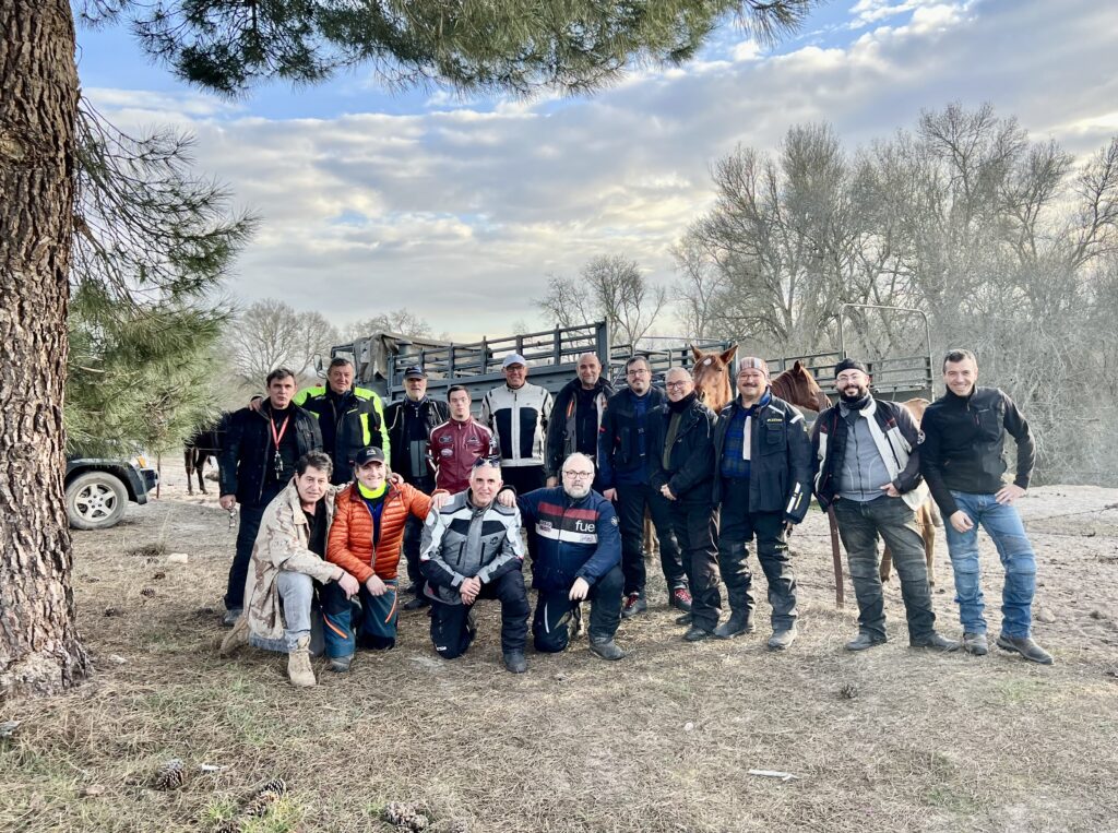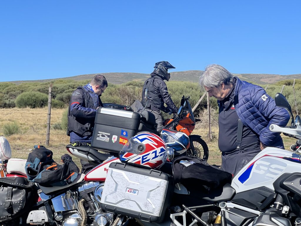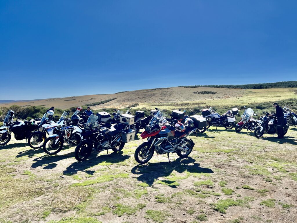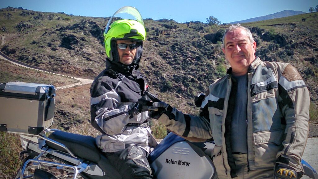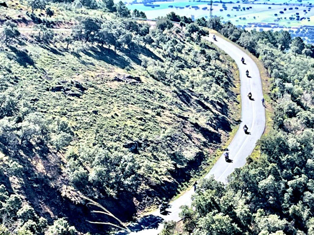 Una vez arrancados no tenemos por qué circular en conserva, aunque normalmente rodamos agrupados de manera afín; por velocidad, por motivación, por tiempo a dedicar a fotografías… Llevamos la ruta cargada en el navegador y de esta manera podemos gestionarnos. Aunque siempre definimos unos puntos obligatorios de reagrupamiento. El grupo va normalmente cerrado por el Presidente u otro piloto que tenga ganas de ir detrás, y que lleve el gps cargado; de manera que si alguno encuentra algún contratiempo, le bastará con quedarse quieto esperando el refuerzo.