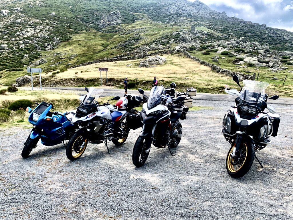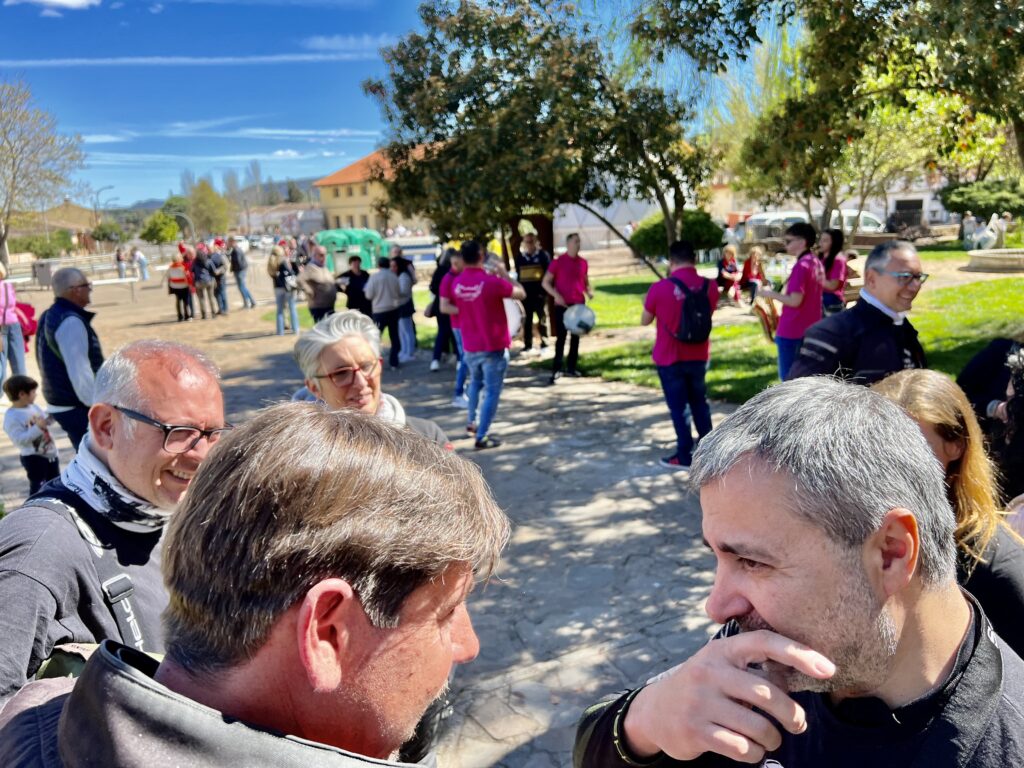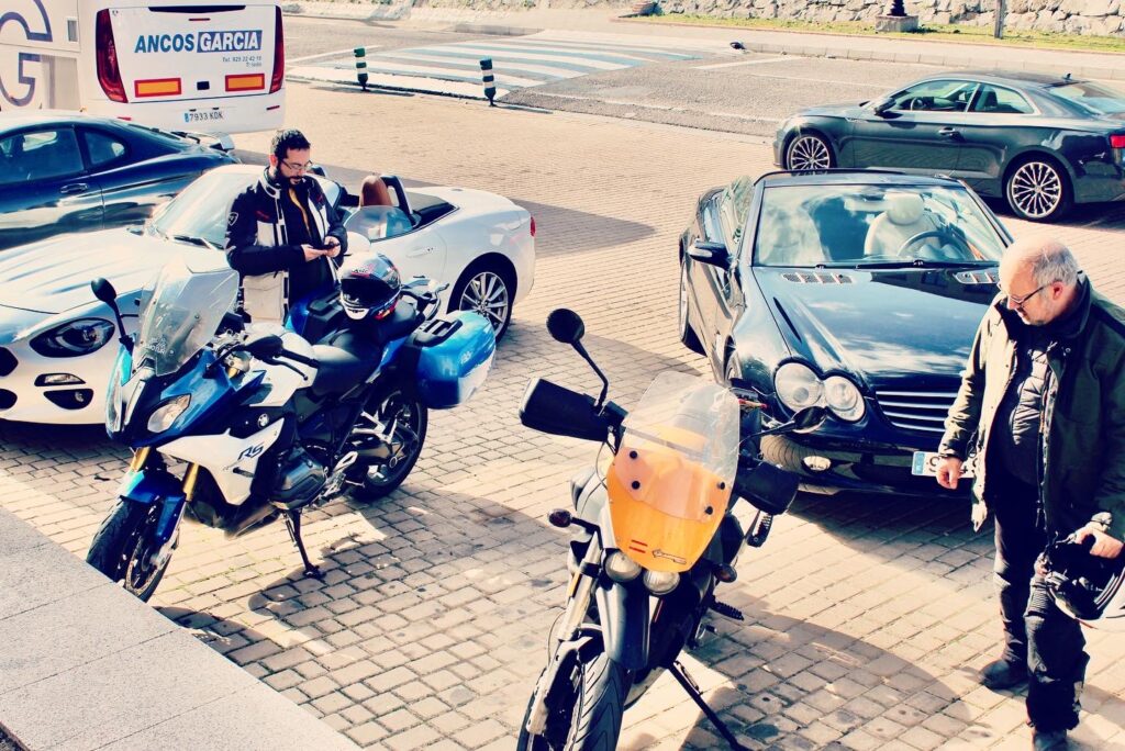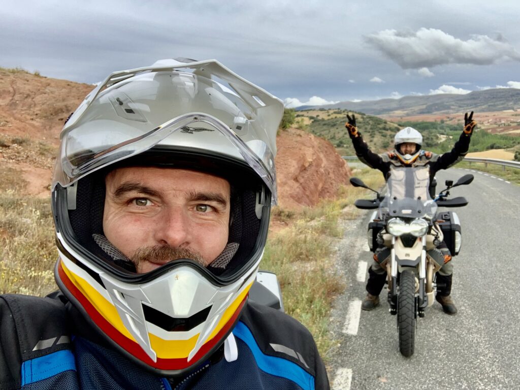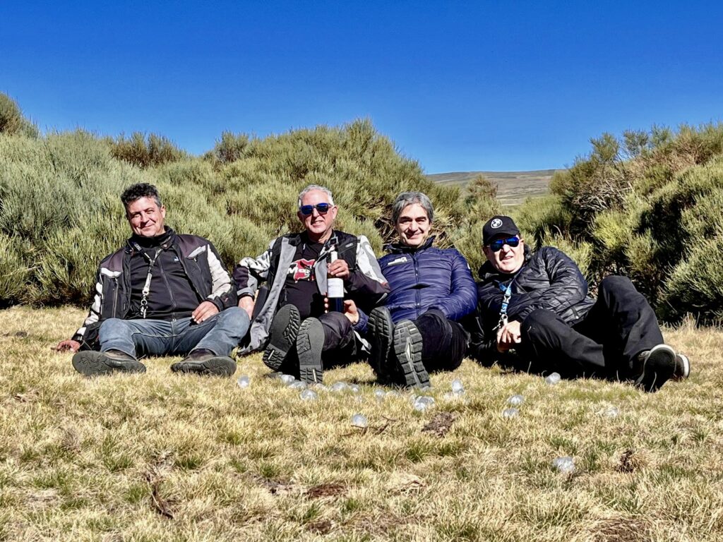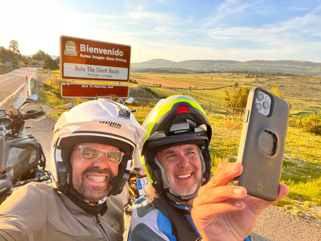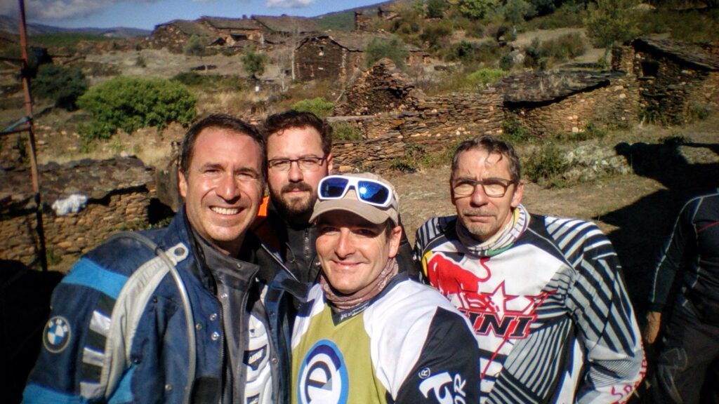 Una vez arrancados no tenemos por qué circular en conserva, aunque normalmente rodamos agrupados de manera afín; por velocidad, por motivación, por tiempo a dedicar a fotografías… Llevamos la ruta cargada en el navegador y de esta manera podemos gestionarnos. Aunque siempre definimos unos puntos obligatorios de reagrupamiento. El grupo va normalmente cerrado por el Presidente u otro piloto que tenga ganas de ir detrás, y que lleve el gps cargado; de manera que si alguno encuentra algún contratiempo, le bastará con quedarse quieto esperando el refuerzo.