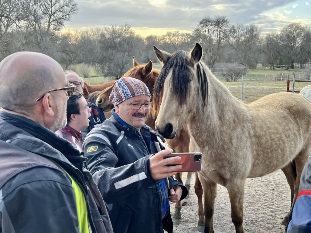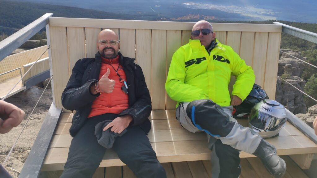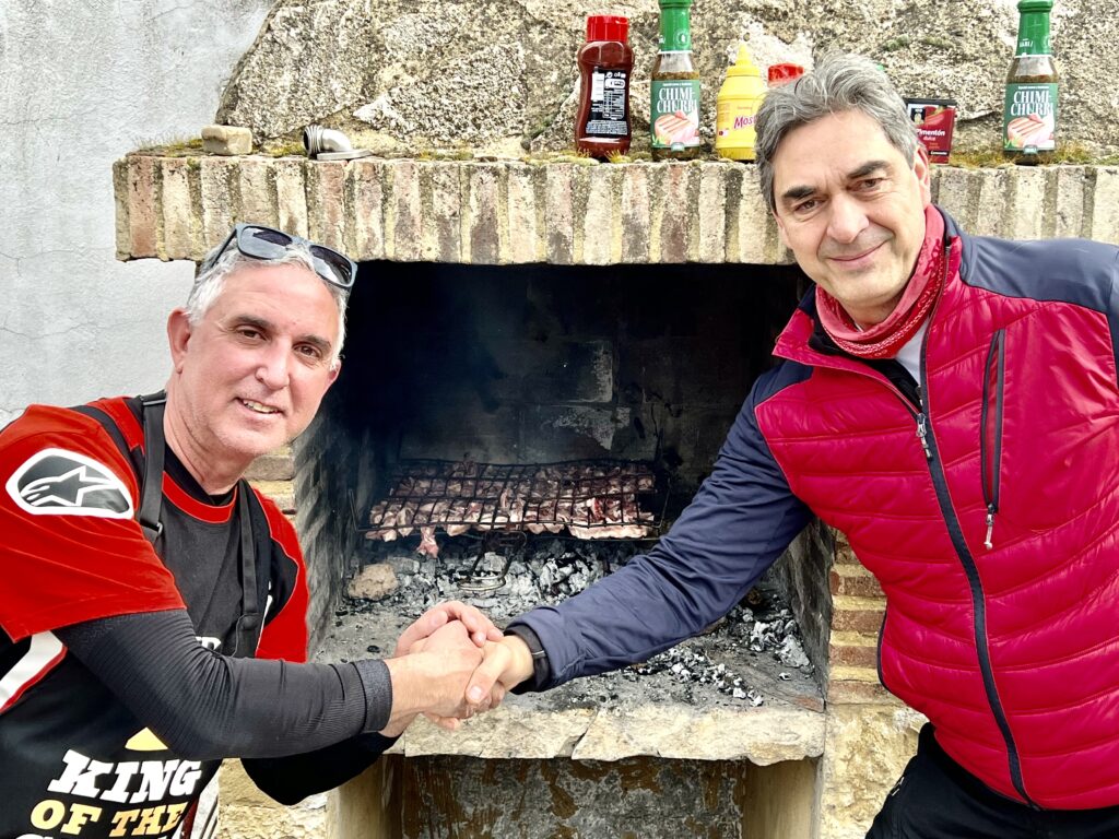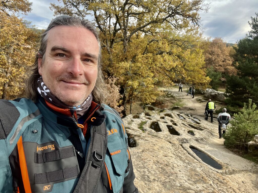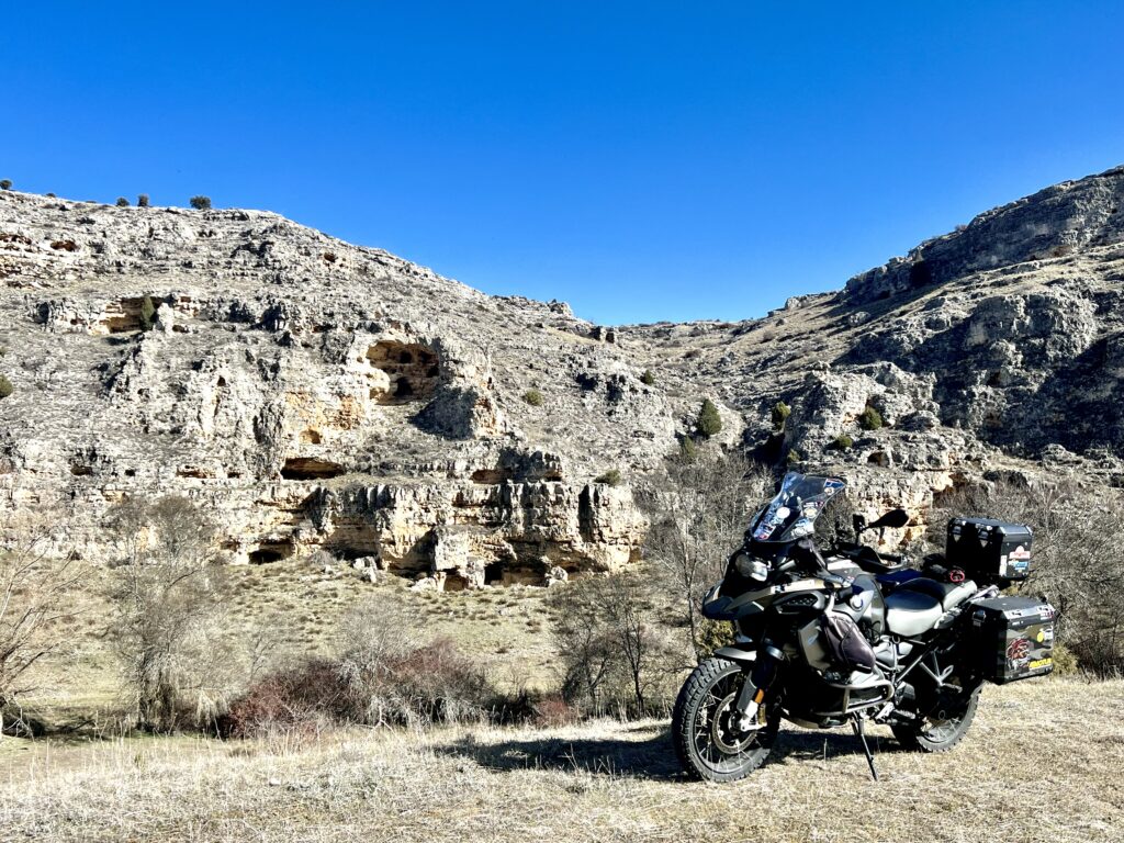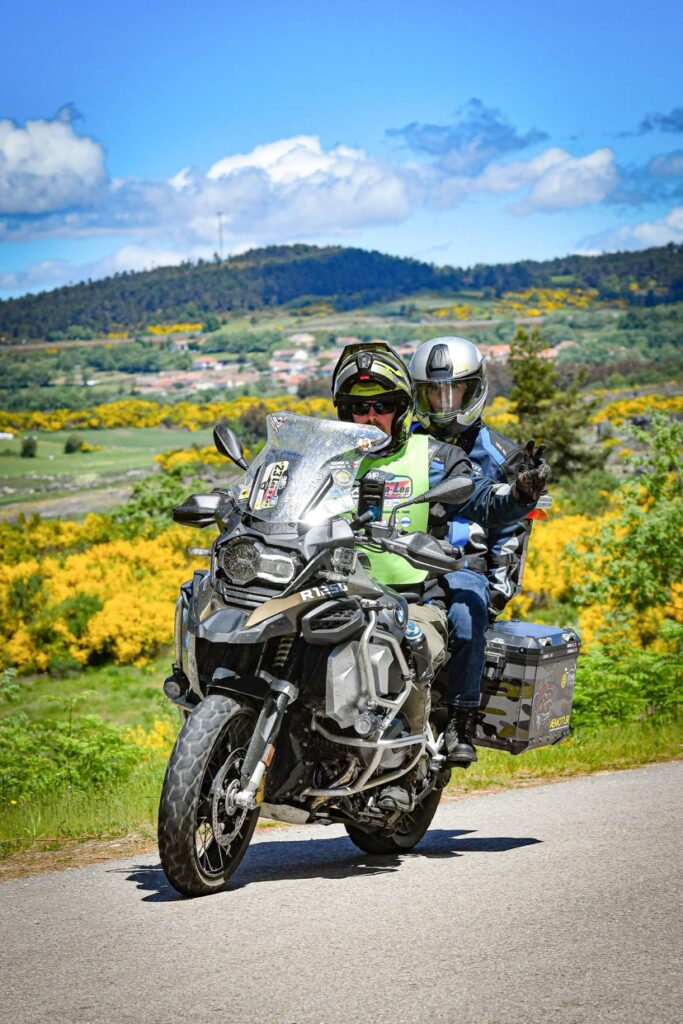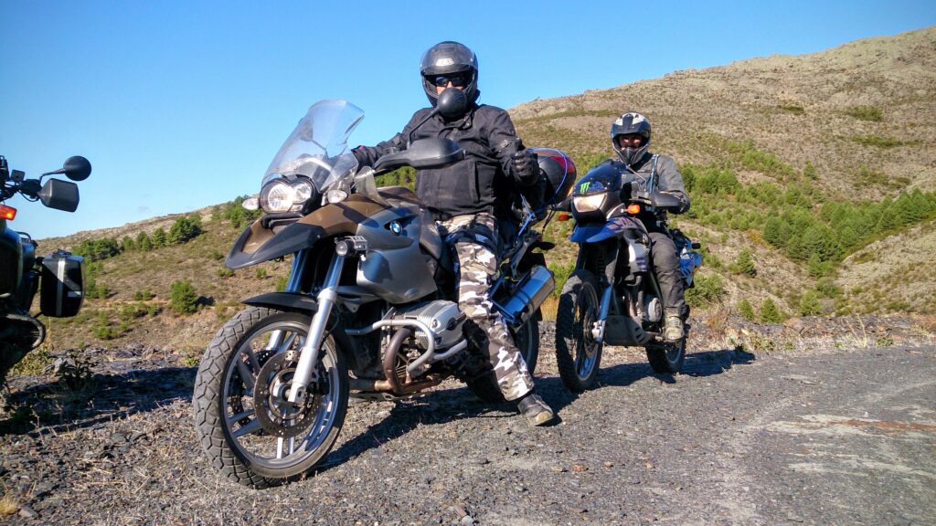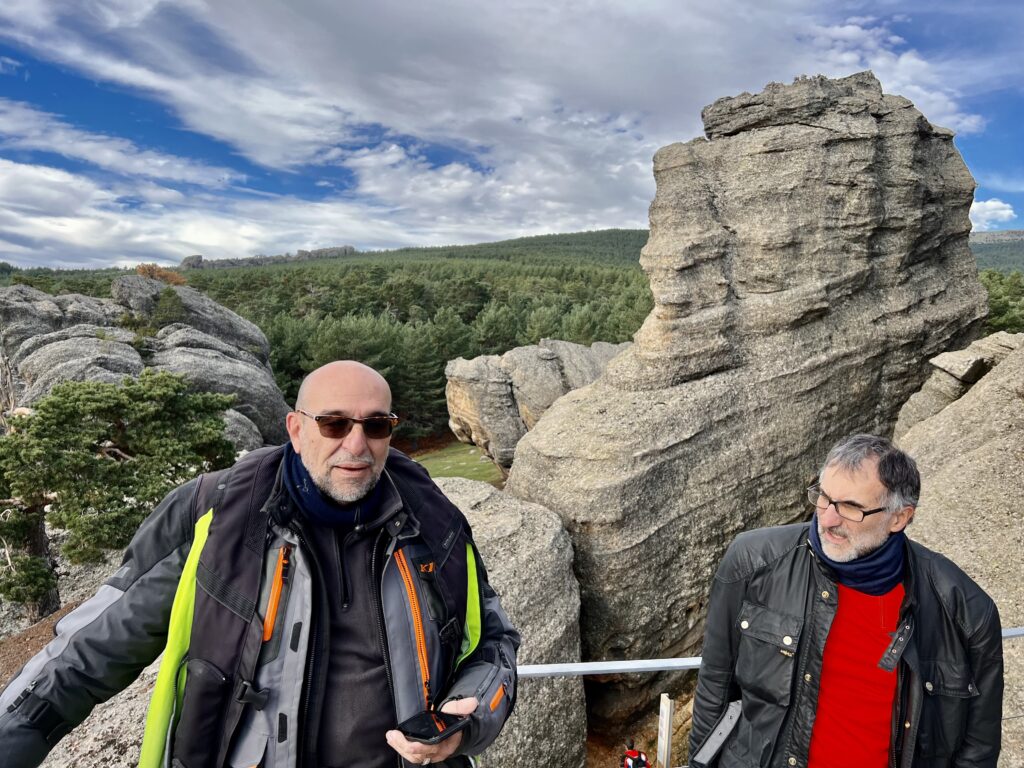 Una vez arrancados no tenemos por qué circular en conserva, aunque normalmente rodamos agrupados de manera afín; por velocidad, por motivación, por tiempo a dedicar a fotografías… Llevamos la ruta cargada en el navegador y de esta manera podemos gestionarnos. Aunque siempre definimos unos puntos obligatorios de reagrupamiento. El grupo va normalmente cerrado por el Presidente u otro piloto que tenga ganas de ir detrás, y que lleve el gps cargado; de manera que si alguno encuentra algún contratiempo, le bastará con quedarse quieto esperando el refuerzo.